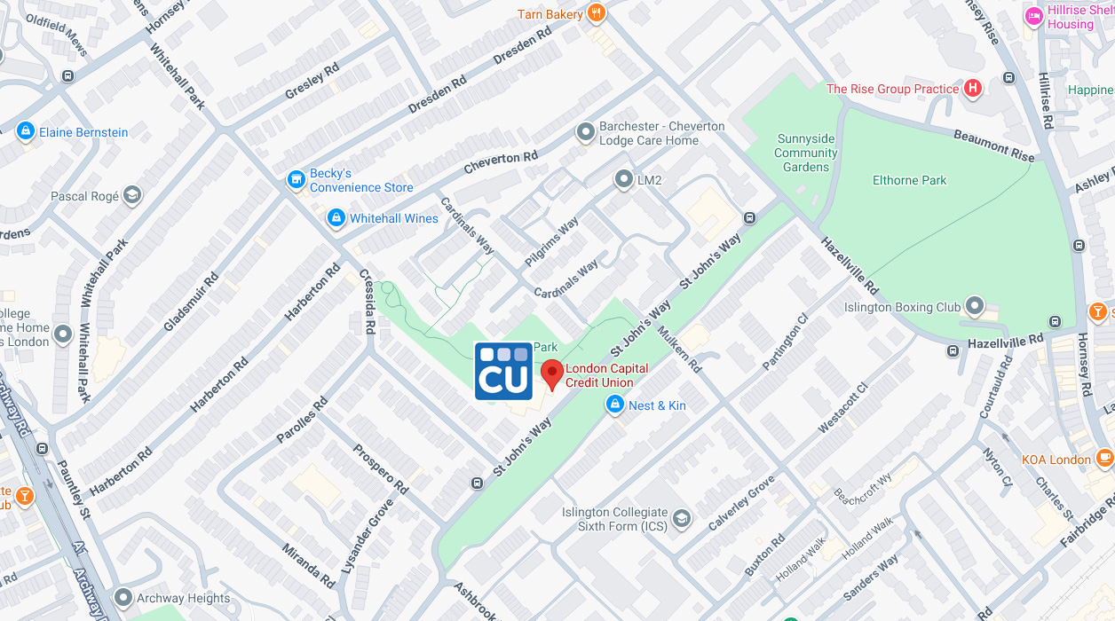 We are located in the Archway district North London. Our step free office is easily accessible by public transport and on street pay and display parking is available. The nearest tube is only a five minute walk away at Archway on the High Barnet Branch of the Northern Line. Bus stops are located near the entrance to our offices and is well served by the 210 and 41 bus services. You should get off at the stop called ‘Cressida Road’, which is the second stop in St John’s Way from either end. If coming from Archway you can get the 41 or 210 bus from near Archway Tube Station. On street car parking is available, but is pay and display at certain times. We are located within the Caxton House Community Centre, and our office is at the Archway end of the building and not via the building main entrance.
